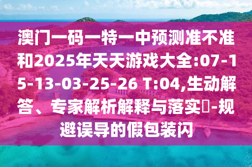 澳門一碼一特一中預(yù)測(cè)準(zhǔn)不準(zhǔn)和2025年天天游戲大全:07-15-13-03-25-26 T:04,生動(dòng)解答、專家解析解釋與落實(shí)?-規(guī)避誤導(dǎo)的假包裝閃