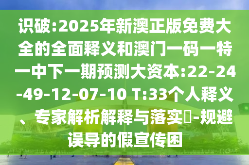 識破:2025年新澳正版免費大全的全面釋義和澳門一碼一特一中下一期預(yù)測大資本:22-24-49-12-07-10 T:33個人釋義、專家解析解釋與落實?-規(guī)避誤導(dǎo)的假宣傳困