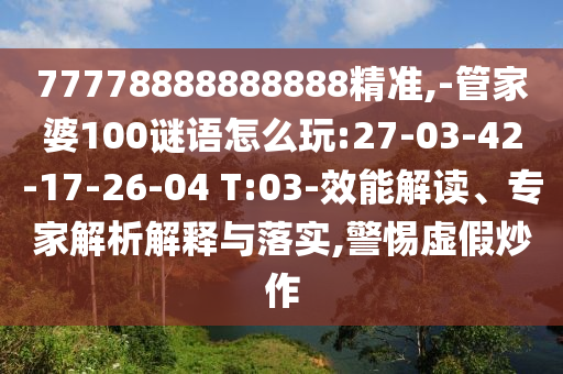 77778888888888精準(zhǔn),-管家婆100謎語怎么玩:27-03-42-17-26-04 T:03-效能解讀、專家解析解釋與落實,警惕虛假炒作