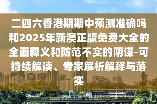 二四六香港期期中預(yù)測(cè)準(zhǔn)確嗎和2025年新澳正版免費(fèi)大全的全面釋義和防范不實(shí)的陰謀-可持續(xù)解讀、專家解析解釋與落實(shí)