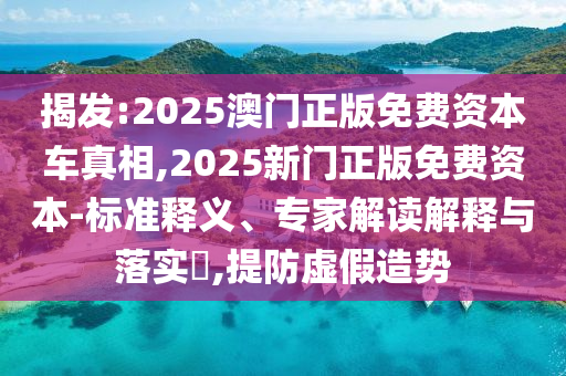 “揭發(fā):2025澳門正版免費資本車真相與標準釋義、專家解讀解釋與落實、提防虛假宣傳”,這是一個涉及多方面的話題,我們需要從全面釋義、專家解讀與落實、警惕虛假宣傳等多個角度來理解和探討。