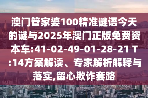 澳門管家婆100精準(zhǔn)謎語今天的謎與2025年澳門正版免費(fèi)資本車:41-02-49-01-28-21 T:14方案解讀、專家解析解釋與落實(shí),留心欺詐套路