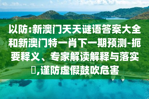 以防:新澳門天天謎語答案大全和新澳門特一肖下一期預測-扼要釋義、專家解讀解釋與落實?,謹防虛假鼓吹危害