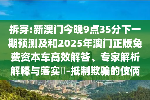 拆穿:新澳門今晚9點35分下一期預(yù)測及和2025年澳門正版免費資本車高效解答、專家解析解釋與落實?-抵制欺騙的伎倆