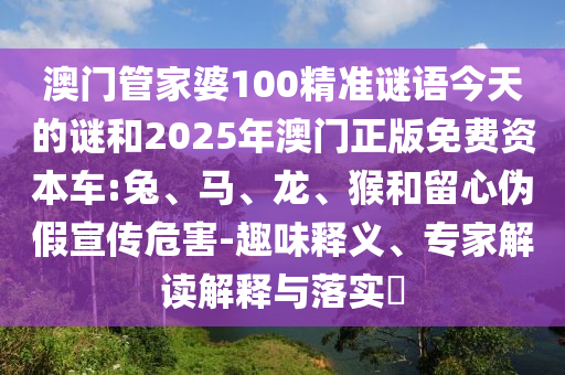 澳門(mén)管家婆100精準(zhǔn)謎語(yǔ)今天的謎和2025年澳門(mén)正版免費(fèi)資本車(chē):兔、馬、龍、猴和留心偽假宣傳危害-趣味釋義、專(zhuān)家解讀解釋與落實(shí)?